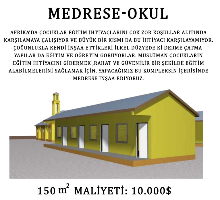 Bölgeye yapılan mescit inşaları orada yaşayan çocukların eğitim hayatı için de büyük bir katkı sağlamaktadır. Okul bulunmayan pek çok yoksul köyde çocuklar sadece ibadethaneleri okul olarak kullanmaktadır. Bölgeye kalıcı bir ibadethane yapabilme hedefi ile çıkmış olduğumuz bu yolculuğumuzda Afrika’ya eğitim kurumu da kazandırmak için mescit inşası üzerinde daha çok durmaktayız.